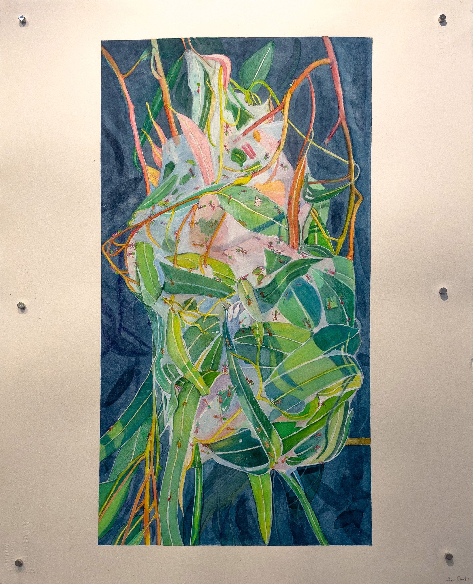 In this delightful series of work on paper, you will be taken on a journey of colour and line which captivates the delight Clarke feels when observing green ants constructing nests and the fascination of a brittle starfish washed up on Casuarina beach.