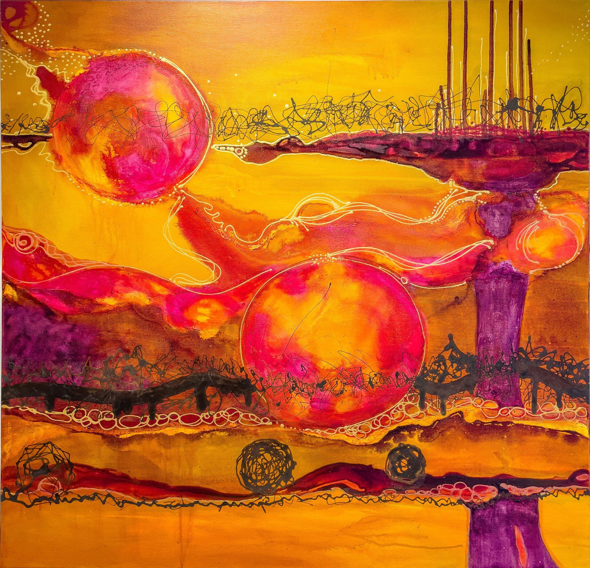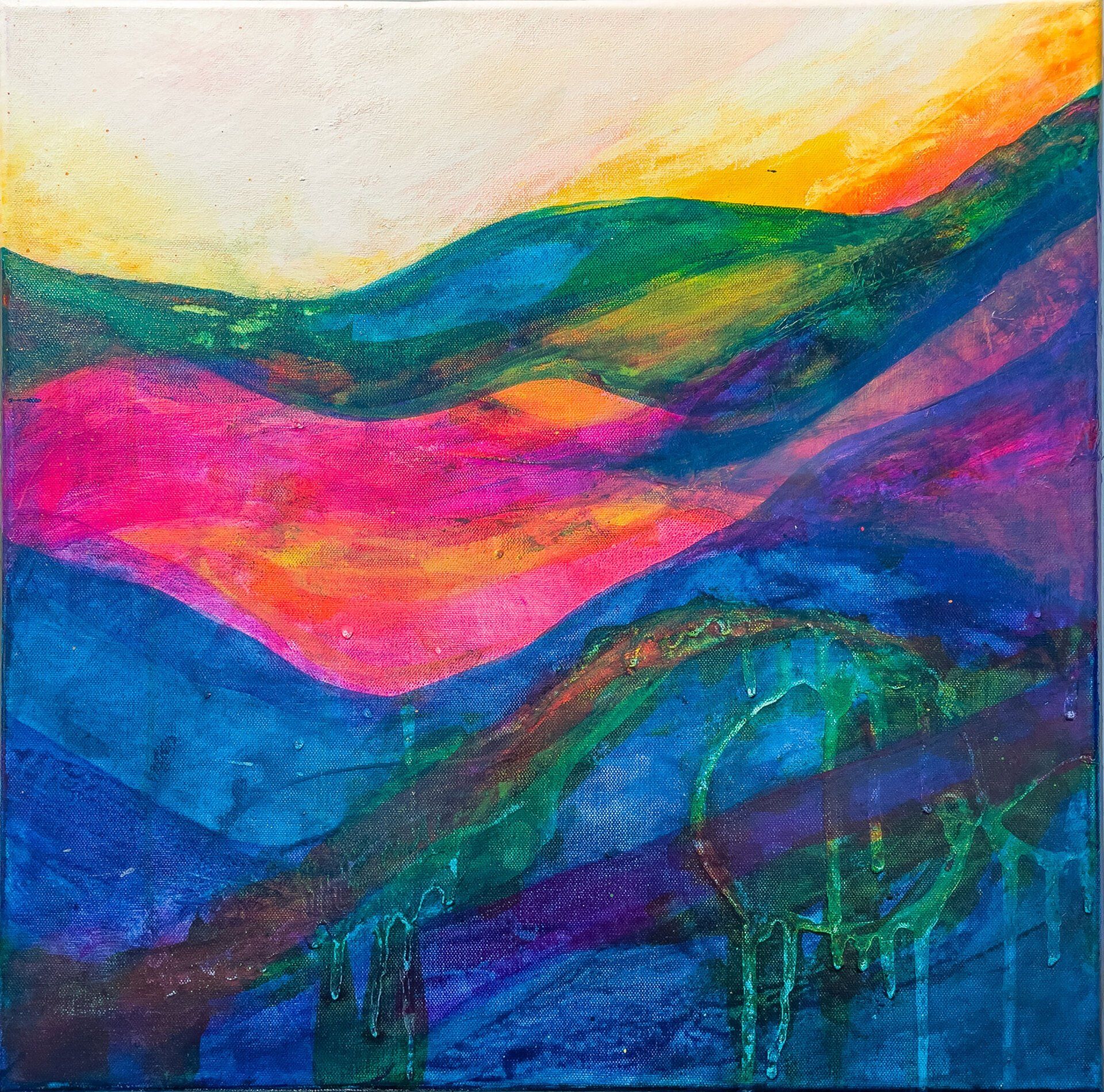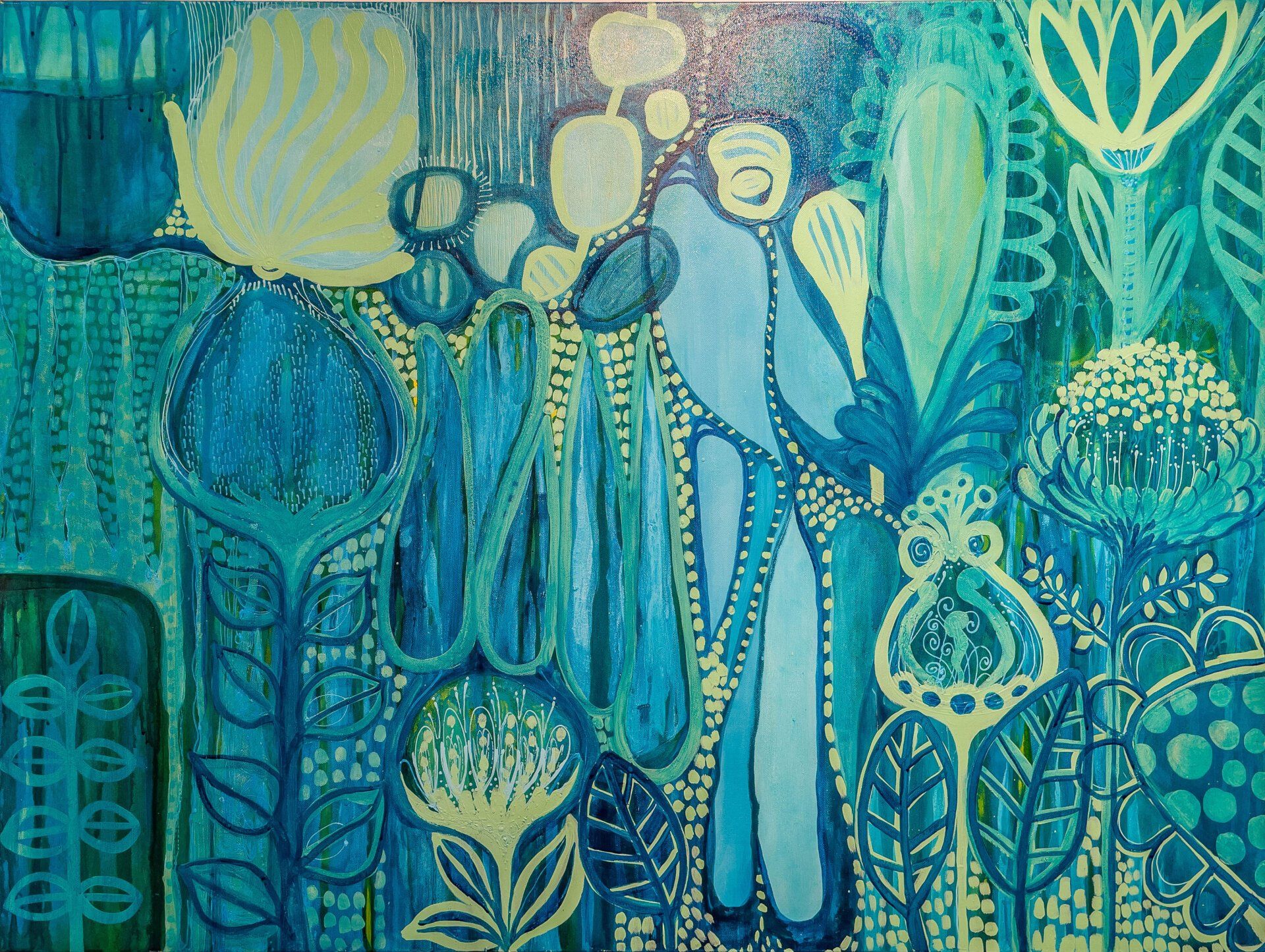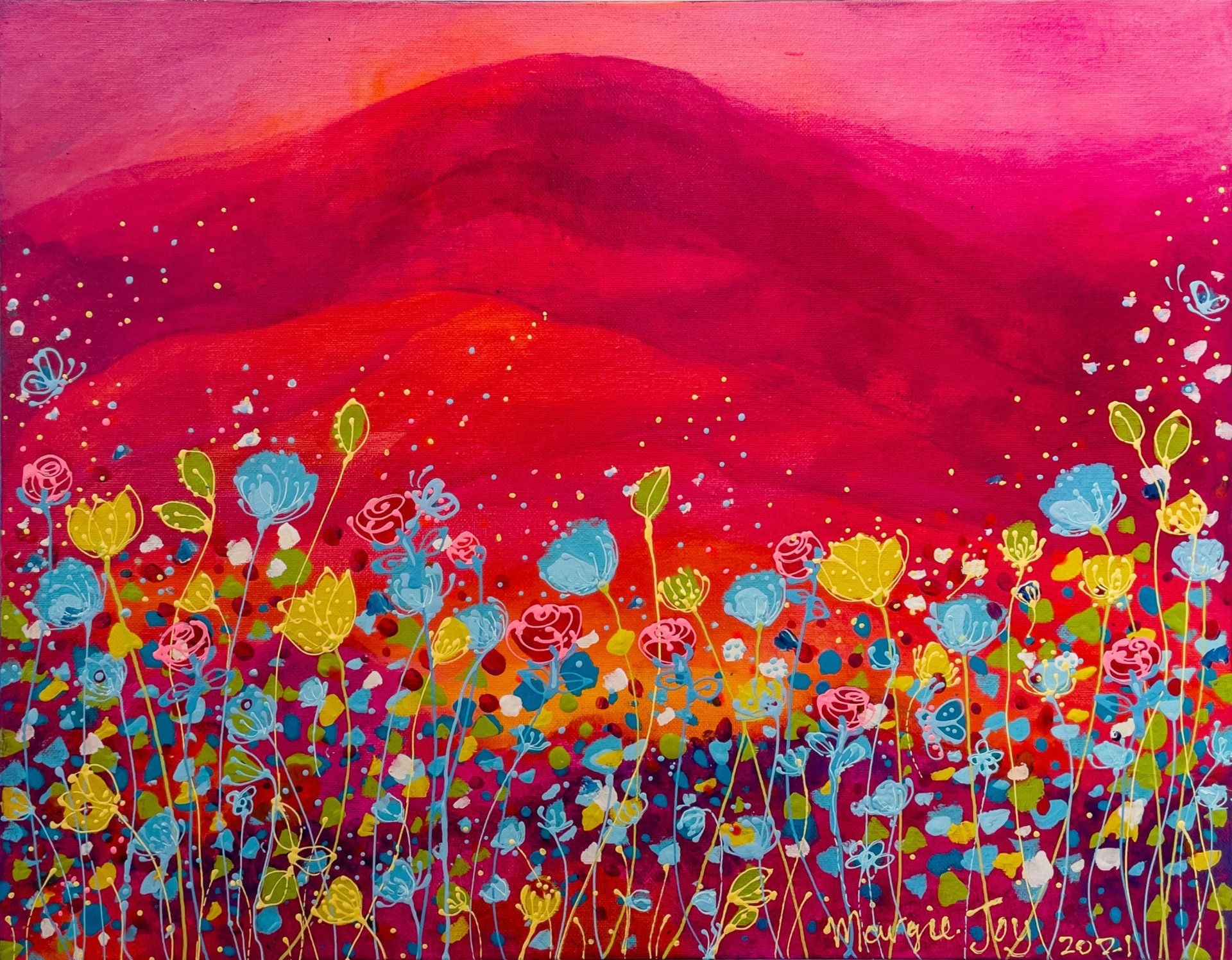 As a mixed media artist, Goodluck’s exploration of acrylic, pigment inks, water colours and line-making produces vibrant work to bring joy to your day.